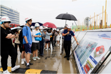 在施工現(xiàn)場,施工單位中鐵建設(shè)集團(tuán)汕頭高鐵站樞紐一體化工程項(xiàng)目總工程師為師生們介紹了項(xiàng)目工程概況、技術(shù)質(zhì)量管理、技術(shù)創(chuàng)新和應(yīng)用、質(zhì)量標(biāo)準(zhǔn)化示范工地創(chuàng)建等情況,講解每道工序的施工過程,并就大家提出的工程技術(shù)問題逐一進(jìn)行答疑解惑。