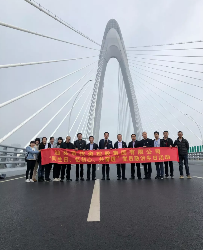大家首先來到海晟公司承建并即將通車的新津河大橋。大橋設(shè)計(jì)為城市快速路, 路線西起中山東路泰星路交通環(huán)島以東,跨越新津河,東至武夷山路以西;大橋主塔造形為象征汕頭海洋文化的水滴造型。海晟公司黨支部書記李建汕向大家介紹了項(xiàng)目建設(shè)和進(jìn)展情況。
