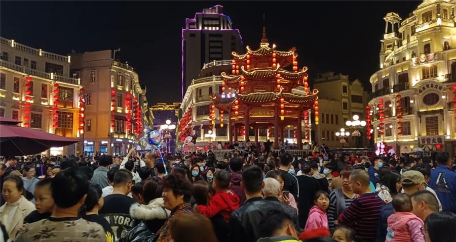 小公園開埠區(qū)是春節(jié)里我市最受歡迎的景點之一,今年湖南衛(wèi)視華人春晚,讓汕頭小公園又上了熱搜。假日期間的小公園,一到晚上更添韻味,古色古香的騎樓和小公園亭被燈光裝點得特別靚麗,吸引了大量游客前來“打卡”。據統(tǒng)計,大年初一至初四,小公園歷史文化街區(qū)每天的游客都超10萬人次以上,初三單天人流量超過15萬人次。