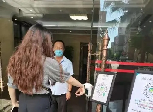 ??滴飿I(yè)公司把疫情防控工作放在首位,嚴格按照疫情防控標準,在集團總部大廈大堂、停車場出入口分別設(shè)置防疫檢測點,安排專人專崗,有序地對進入車輛及人員采取疫情防控措施,對進入大廈所有人員進行體溫檢測,引導(dǎo)科學佩戴口罩、掃描“粵康碼”快速打卡,對外來人員實行來訪信息登記。