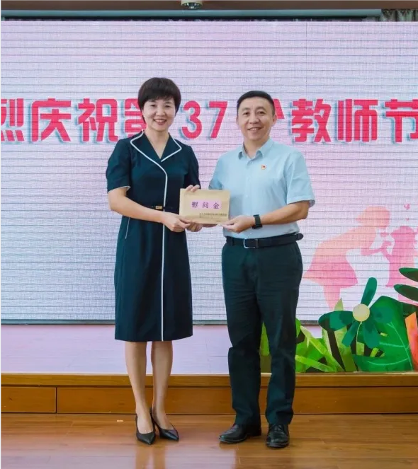 9月7日上午,在第37個(gè)教師節(jié)來臨之際,市投控集團(tuán)黨委書記、董事長吳少青陪同市政協(xié)副主席林依民帶領(lǐng)的慰問團(tuán)一行8人來到汕頭市中山幼兒園開展教師節(jié)慰問活動(dòng),向教師們致以節(jié)日的問候和誠摯的祝福,并送上慰問金。