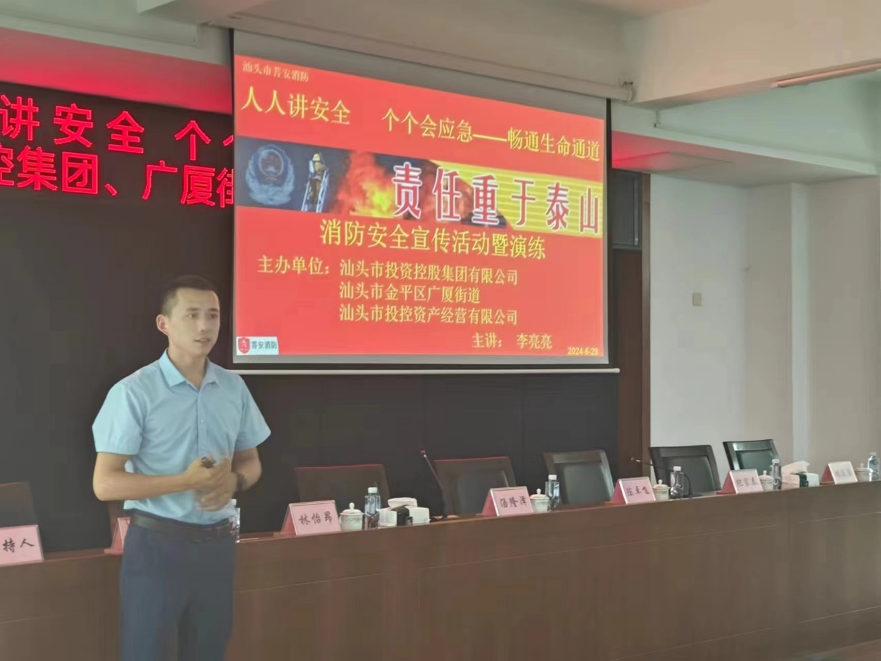 為進一步增強員工消防安全意識和避險逃生能力,結(jié)合汕頭市深化新時代文明單位創(chuàng)建,近日,汕投控集團和下屬企業(yè)汕頭市投控資產(chǎn)經(jīng)營有限公司聯(lián)合廣廈街道以“人人講安全、個個會應急——暢通生命通道”為主題,開展集中觀看“安全生產(chǎn)月”主題宣傳和事故警示教育片、舉辦“全民安全公開課”和應急演練等安全生產(chǎn)教育系列活動。公司各部門、各項目物業(yè)服務中心和廣廈街道各社區(qū)居委會共計100余人參加活動。