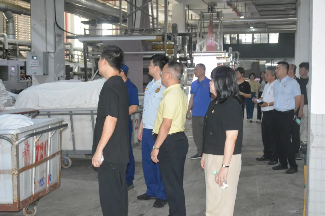 “這個樓層柱距多少、層高多少才能滿足這個水性印花設(shè)備?”“印染廠區(qū)對消防有什么特殊需求?”“布匹從染整到熨平到水洗,動線是怎么設(shè)計的?”為進一步推進省產(chǎn)業(yè)有序轉(zhuǎn)移主平臺潮南片區(qū)建設(shè),結(jié)合近期擬投通用廠房和消防救援站項目,近日,海晟公司黨支部聯(lián)合汕頭市潮南區(qū)紡織印染環(huán)保綜合處理中心、汕頭市潮南區(qū)消防救援大隊和園區(qū)企業(yè)開展“實干篤行促發(fā)展”主題黨日活動,在汕頭市鼎泰豐實業(yè)有限公司廠區(qū)內(nèi)開展調(diào)研。鼎泰豐實業(yè)是園區(qū)內(nèi)唯一一家由國家工信部授牌的“國家綠色工廠”,現(xiàn)場各種設(shè)備排列整齊,生產(chǎn)井然有序,通過公司相關(guān)負責人對公司先進生產(chǎn)線標準化流程的情況介紹,大家對紡織印染生產(chǎn)空間的設(shè)計與要素有了更直觀的感受。