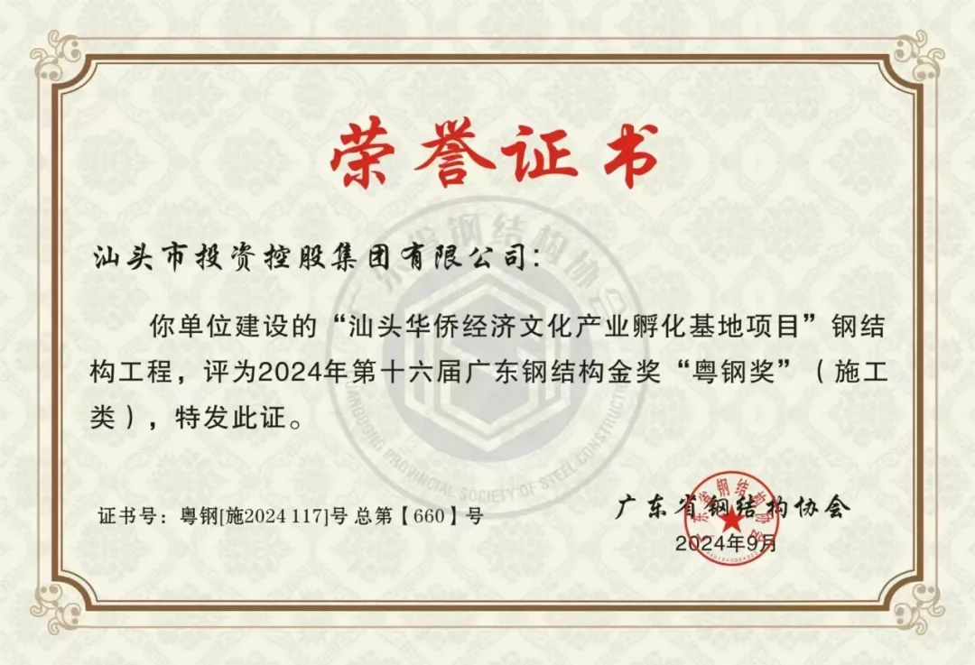 近日,由汕投控集團(tuán)投資建設(shè)的汕頭國(guó)際會(huì)展中心項(xiàng)目(立項(xiàng)名稱:汕頭市華僑經(jīng)濟(jì)文化產(chǎn)業(yè)孵化基地)鋼結(jié)構(gòu)工程榮獲2024年第十六屆廣東鋼結(jié)構(gòu)金獎(jiǎng)“粵鋼獎(jiǎng)”。