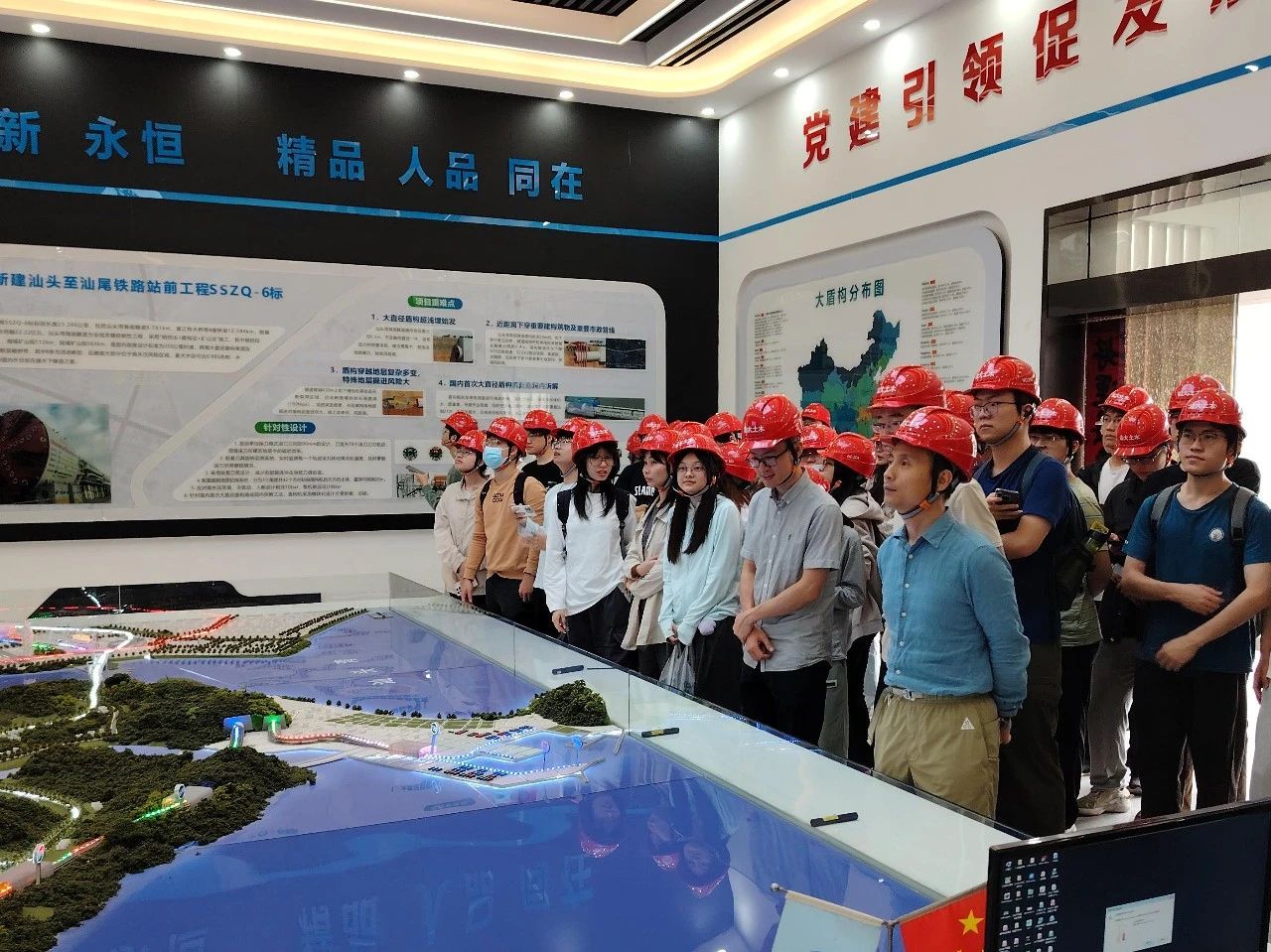 2025年4月19日,汕投控集團(tuán)聯(lián)合汕頭大學(xué)工學(xué)院、中鐵十四局集團(tuán)有限公司共同開展“鐵路工程建設(shè)項(xiàng)目實(shí)踐培訓(xùn)”活動(dòng),集團(tuán)公司員工及汕頭大學(xué)師生一行70余人前往在建項(xiàng)目新建廣梅汕鐵路汕頭站至廣澳港區(qū)鐵路工程盾構(gòu)隧道實(shí)地參觀學(xué)習(xí),將施工現(xiàn)場(chǎng)變?yōu)榕嘤?xùn)實(shí)踐課堂,進(jìn)一步推動(dòng)汕投控集團(tuán)與汕頭大學(xué)校企合作實(shí)踐活動(dòng)取得新突破。