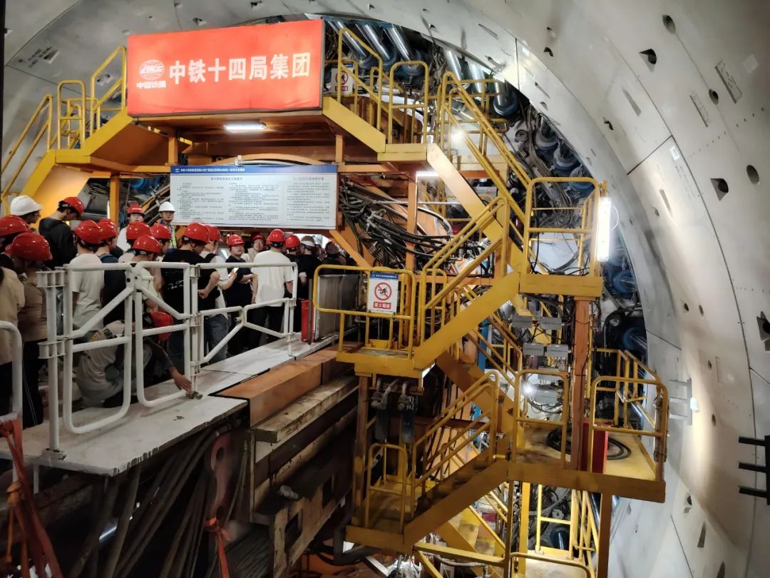 在項(xiàng)目施工現(xiàn)場(chǎng),中鐵十四局集團(tuán)有限公司項(xiàng)目盾構(gòu)部總工程師首先介紹了項(xiàng)目概況、施工進(jìn)展、技術(shù)重難點(diǎn)及解決方案等情況,使大家初步了解施工現(xiàn)場(chǎng)的工作內(nèi)容。隨后,參訓(xùn)人員深入盾構(gòu)隧道,由項(xiàng)目部技術(shù)專家系統(tǒng)講解汕頭海灣隧道的建設(shè)脈絡(luò)、盾構(gòu)法及礦山法的施工工藝和技術(shù)解決方案。