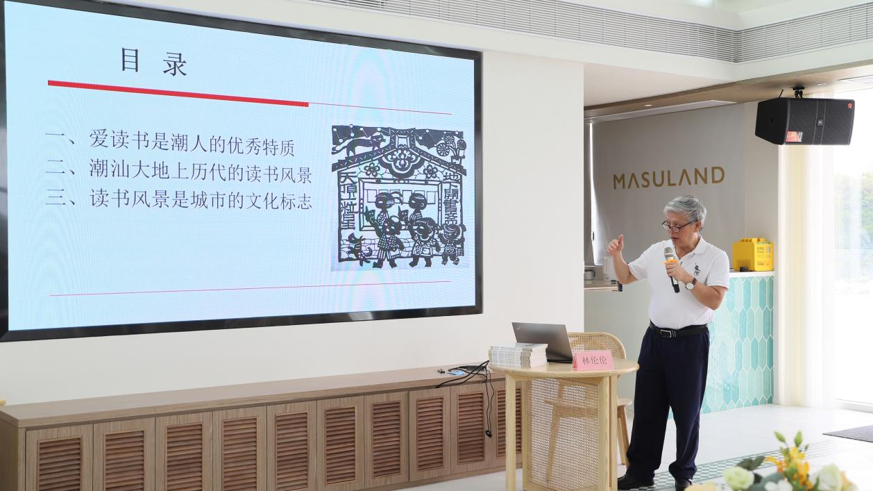 活動現(xiàn)場,吳少青為林倫倫教授頒發(fā)集團(tuán)投控學(xué)堂“榮譽(yù)導(dǎo)師”聘書。隨后,林倫倫教授分享了他精心準(zhǔn)備的課題《讀書的風(fēng)景和城市的視野與格局》。從潮汕先賢文人、到潮汕歷代讀書風(fēng)景、再到城市文化發(fā)展,林倫倫教授認(rèn)為,只有越來越多的人發(fā)自內(nèi)心的愛讀書,讀好書,才能提升整座城市的文化氣息?!巴犊貙W(xué)堂媽嶼藍(lán)合勝書店學(xué)習(xí)基地”不僅僅是員工學(xué)習(xí)交流的活動陣地,更是一個宣傳汕頭城市文化的窗口,他提出,學(xué)習(xí)基地可以融合學(xué)習(xí)、交流等多種功能,從而打造一個舒適的讀書空間和文化空間,讓來到這里的人們進(jìn)一步感受到文化的魅力。一場精彩的文化交流課,也在現(xiàn)場引發(fā)了精彩的智慧交流和思想碰撞。在互動環(huán)節(jié),部分員工提出了關(guān)注的問題并得到林倫倫教授精彩的解答。
