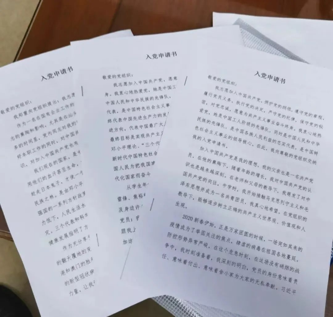 這是來自疫情一線的入黨申請書,更是抗疫“請戰(zhàn)書”,它表達了95后青年干部謝華龍、林潤生和李爍鑠入黨的決心。