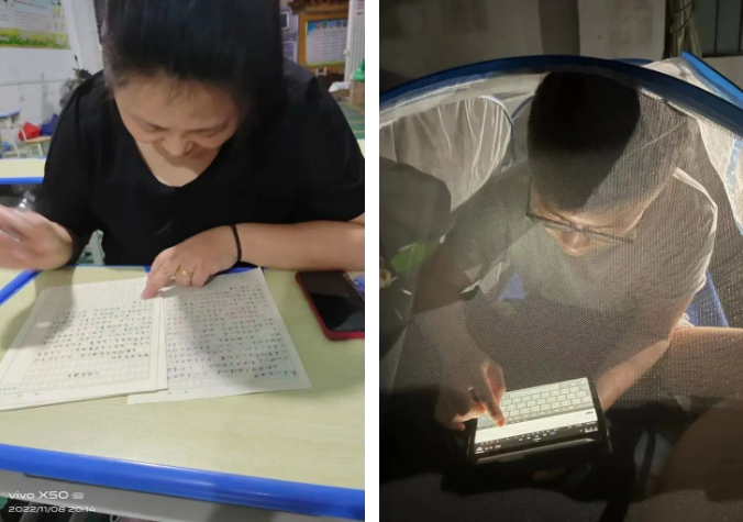 在臨時黨支部黨員的帶動和影響下,11月8日晚上,在潮南區(qū)陳店鎮(zhèn)定安社區(qū)抗疫支援隊伍宿舍區(qū),林潤生、謝華龍、丁秋玲等10名戰(zhàn)“疫”人員在利用休息時間,連夜書寫并遞交入黨申請書,積極向黨組織靠攏。