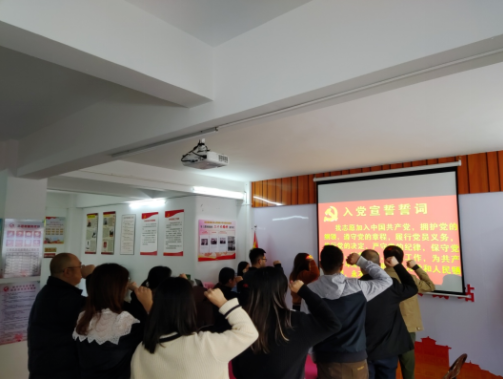 活動(dòng)第三項(xiàng)議程是全體黨員重溫入黨誓詞并為3月份入黨的黨員同志送上了政治生日禮物。