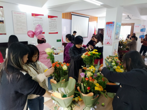 第四項(xiàng)議程是開(kāi)展“花樣人生”慶祝國(guó)際婦女節(jié)活動(dòng)。3月是萬(wàn)物復(fù)蘇、生機(jī)勃勃的季節(jié),在這個(gè)季節(jié)里迎來(lái)了一個(gè)散發(fā)著濃濃溫情的節(jié)日“三·八國(guó)際婦女節(jié)”。活動(dòng)現(xiàn)場(chǎng)由海晟公司黨支部徐東新和曾斌同志代表公司的全體男士向參加活動(dòng)的全體女士送上鮮花和祝福,預(yù)祝公司全體女士節(jié)日快樂(lè)。隨后全體女士開(kāi)展了現(xiàn)場(chǎng)插花活動(dòng)?!芭瘛眰兏髯园l(fā)揮想象力、色彩搭配、整體造型,使得簡(jiǎn)單的花草在她們巧手的修剪和錯(cuò)落有致的插擺中,一件件獨(dú)具匠心又包含深意的插花作品呈現(xiàn)出來(lái)。此次活動(dòng)讓女職工在繁忙的生活中提供了一個(gè)“與花共舞”、“與花為伴”的機(jī)會(huì),既放松了心情又增進(jìn)了女同胞間的溝通交流。